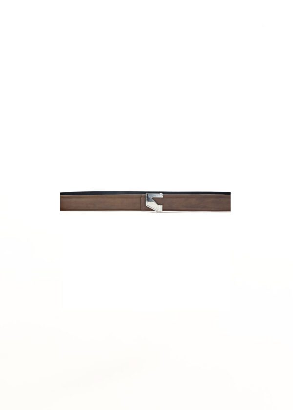 A modern and sleek reversible belt for men, curated in premium ambra calf leather. Designed for versatility, it features a signature logo buckle and a refined finish, making it a classic wardrobe essential.