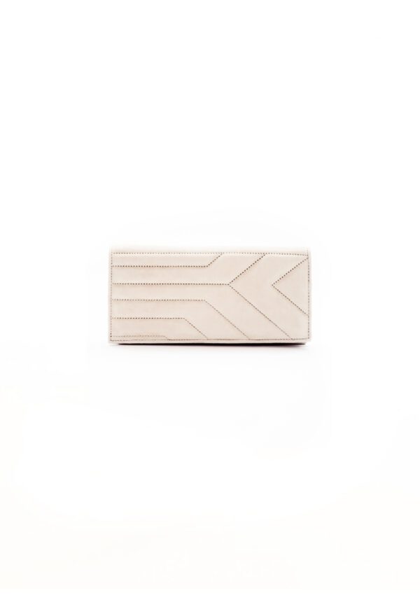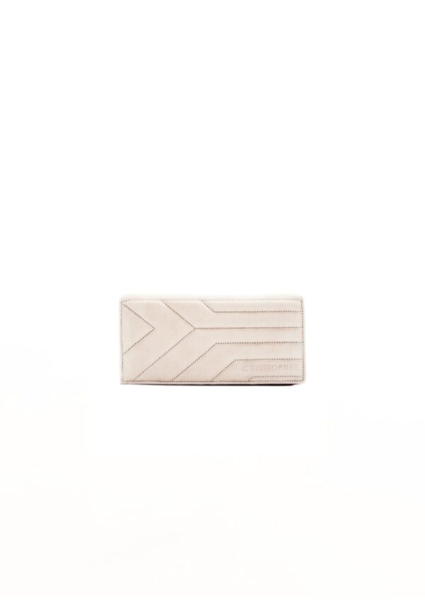 Th Clayline Wallet is a sophisticated accessory designed in premium calf leather in tan suede, enhanced with sharp dot abstract detailing. Designed for elevated functionality, it features spacious compartment with a smooth zip closure, offering a perfect balance of structure and utility.