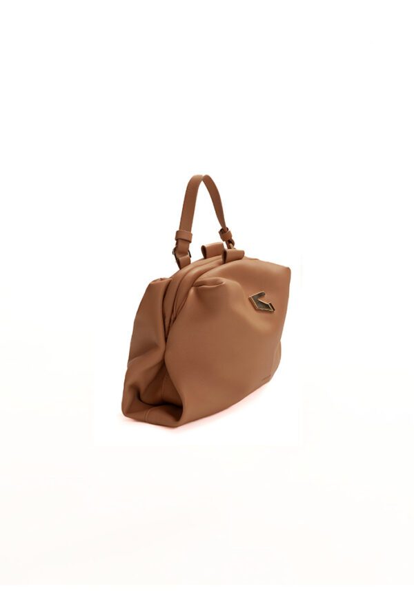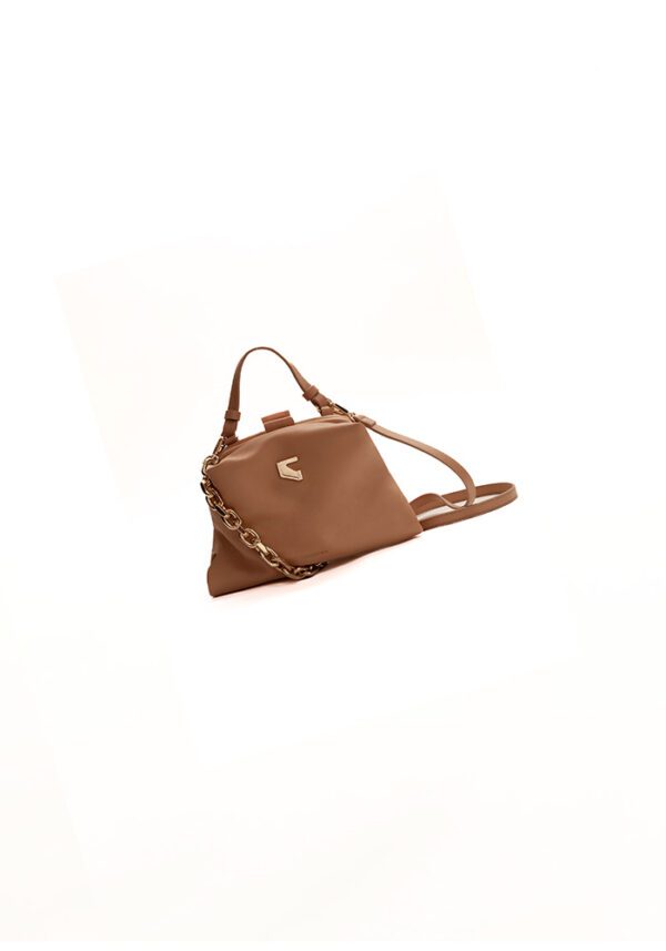 Versatile by design, the Dual Beige Small shoulder bag in beige calf leather transitions smoothly from chic shoulder carry to a contemporary backpack. Small-sized and thoughtfully detailed, it features a top handle, a sleek chain and leather strap combination, and a signature metal logo.