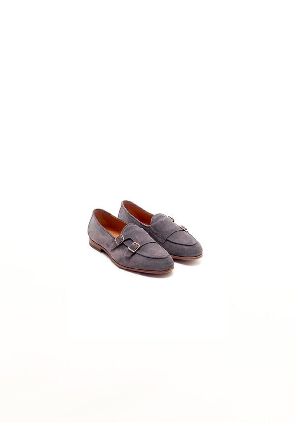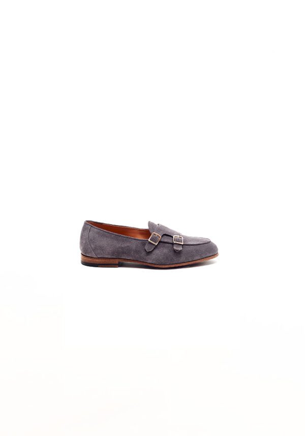 A polished double monk loafer crafted in premium calf leather, featuring an evergreen double buckle flap. The Double Edit is available in two exquisite suede finishes- Grey and Tortora. Moreover the shoes offer a versatile edge to formal and smart-casual looks.