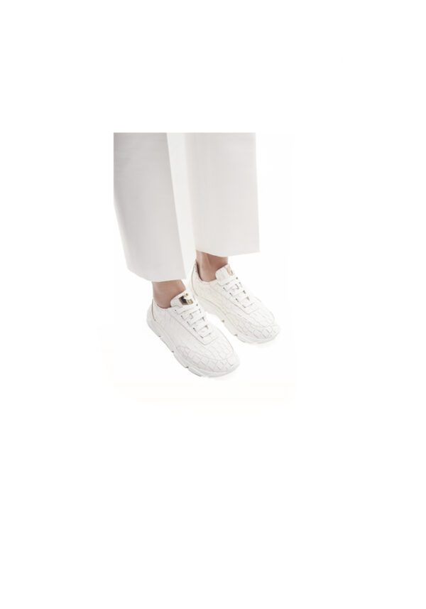 The Low Ice Croco Sneaker in white is curated from premium calf leather with a refined croco print finish. Lightweight & sleek, this low-top design blends everyday comfort with modern style.