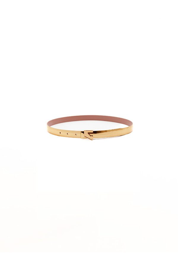 A modern and sleek reversible belt for women, curated in refined metallic calf leather. Designed for versatility, it features a signature logo buckle and premium finish, making it a classic wardrobe essential.