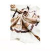 A gorgeous scarf crafted in 100% pure silk, featuring a refined mosaic inspired graphic print in apricot and pistachio shades, set against a subtle base. The product is lightweight and luxurious, adding a statement to any ensemble.