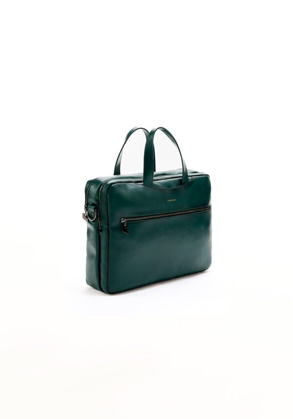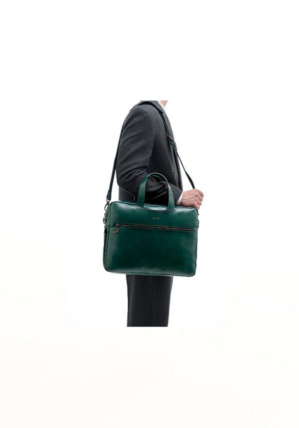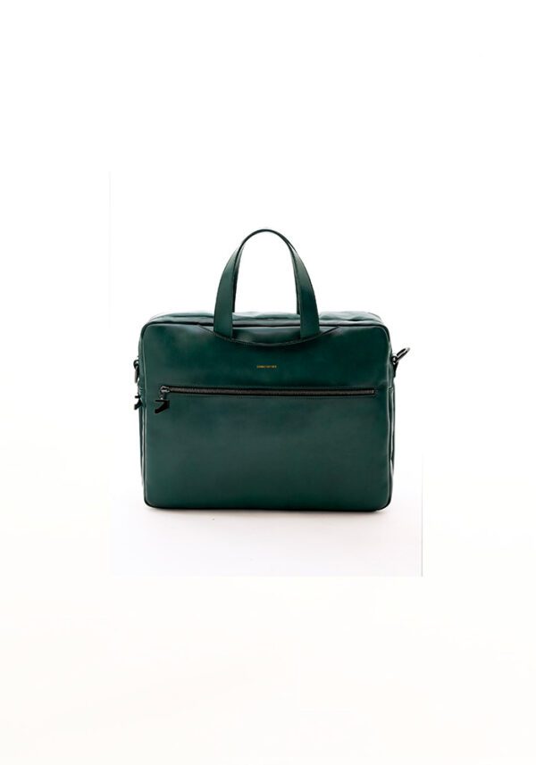 The Oliva Classico Briefcase is a statement of fine utility, curated in rich olive green with an understated antique finish. Designed with structured top handles, it features dual main zip compartments for organized storage and a front smaller zip compartment for easy access to essentials. A discreet gold-engraved logo adds a touch of classic sophistication.