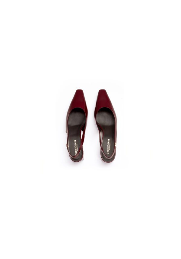 A class pair with a modern edge, the Crimson Echo pumps are designed in glossy burgundy calf leather. Featuring a bold block heel and a refined back strap, it provides both structure and comfort, seemless for transitioning from day to night in style.