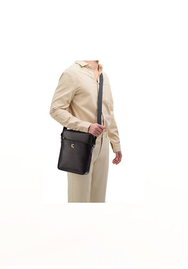 The Tourister Viaggio is a unisex compact bag designed in premium calf leather, blended in a striking black hue. Featuring a main zip compartment and an additional zip, it offers both style and functionality. Finished with a body strap and signature logo detailing.