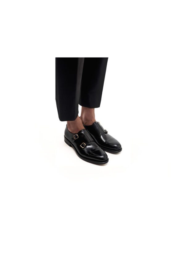 The Twinstrap Monk Black is expertly crafted in fine calf leather with a hand-finished book black finish. Showcasing deep black, this premium style features a classic double strap design with polished metal buckles. Meticulously hand-stitched and refined detailing make it a timeless statement.
